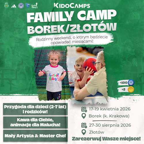 Drodzy Rodzice naszych najmłodszych gwiazd Football Baby! Przed nami rodzinny weekend, o którym będziecie opowiadać miesiącami. Wiemy, że najpiękniejsze wspomnienia to te, które tworzymy wspólnie. Dlatego w tym roku w ramach KidoCamps przygotowaliśmy nie jedną, a dwie szanse na wyjątkowy, rodzinny reset!