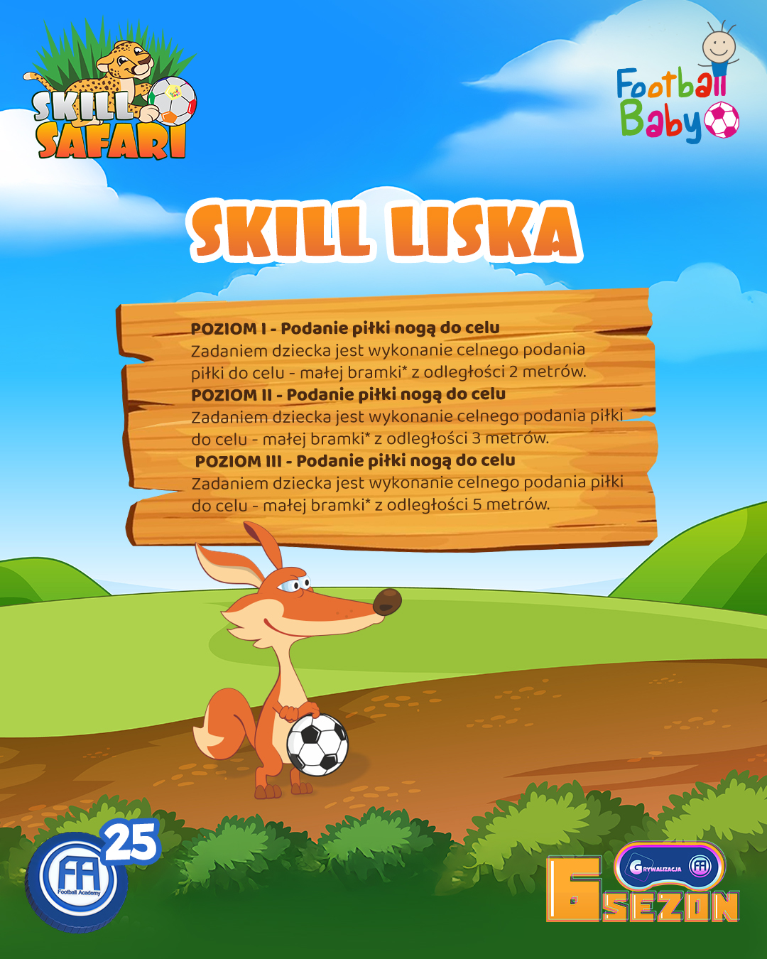 Przygoda na mapie Safari nabiera tempa. Każdy kolejny miesiąc to nowa umiejętność, nowe wyzwanie i kolejna okazja do zdobycia 25 FA Points w ramach naszej grywalizacji. Dzieci budują swoje profile, kolekcjonują naklejki i przede wszystkim – rozwijają piłkarskie fundamenty poprzez zabawę.
